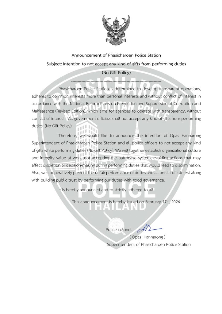 14 ธ.ค.2565 เวลา 08.00 – 12.00 น. พ.ต.อ.ชัยพันธุ์ เพ็ชรสดศิลป์ ผกก.สน.ภาษีเจริญ , พ.ต.ท.ศิริชา